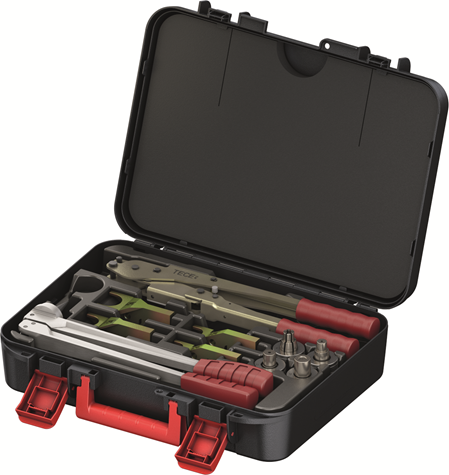 TECEflex Presswerkzeug PMA 40 63 und Aufweitsatz TECEflex im Werkzeugkoffer