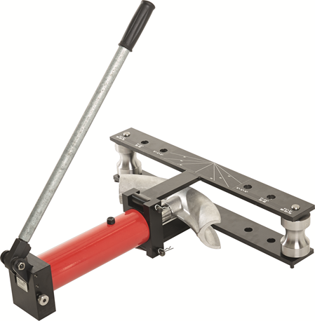 Hydraulische Handbiegemaschine für TECEflex und TECElogo Mehrschichtverbundrohre Dimension 40-63 mm für Baustellen oder Vorfertigung. Komplett in einem Holzkasten, mit Biegesegmenten 40/50/63 mm. Biegewinkel 0-90°.